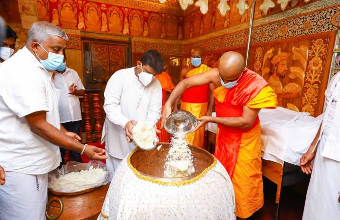 පැරණි චාරිත්රාණුකූළව ශ්රී දළදා මාලිගාවේ සතර මහා මංගල්යයන්ගෙන් එකක් ලෙස සැළකෙන අලුත් සහල් මංගල්ය්ය ඊයේ (28) දුරුතු පුර පසළොස්වක පොහෝ දා පැවැත්විණි. කොරෝනා වසංගත තත්ත්වය යටතේ වුව ද සෞඛ්ය ආරක්ෂිත ක්රම අනුගමනය කරමින් මෙම පුරාණ චාරිත්රය පවත්වන ලදී.