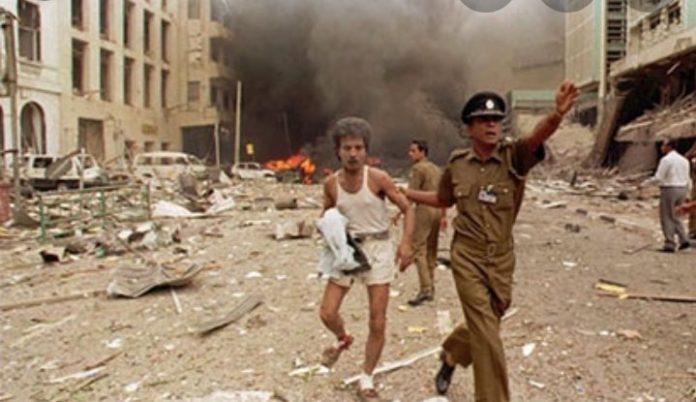 මේ ඡායාරූප අදට හරියටම වසර 25ක් පැරණිය. මෙරට බෙදුම්වාදී අරගලයකට නායකත්වය දුන් ප්රභාකරන් සිය කොටි සංවිධානයේ මරාගෙන මැරෙන බෝම්බකරුවන් මෙහෙයවිමින් කොළඹ කොටුවේ පිහිටි මහ බැංකුවට එල්ල කළ ප්රහාරයේ බිහිසුණු මතකයයි මේ.