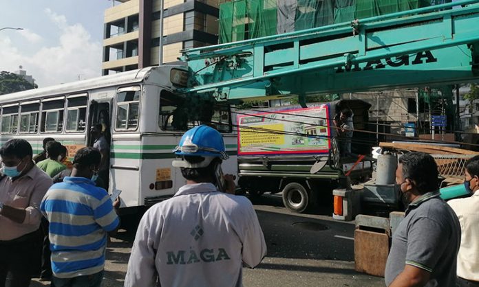 අනතුරට පත්ව ඇත්තේ 171 මාර්ග අංක බස් රථයකි. එම බසයේ පිටුපසින් පැමිණි දොඹකරයක ඉදිරිපස කොටස බසයේ පිටුපස වීදුරුව කඩාගෙන ඇතුළු වී තිබිණි.