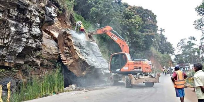 පුද්ගලයන් 14 දෙනකුට මරු කැඳවමින් බසයක් අනතුරට ලක්වූ ස්ථානයේ මාර්ගයට කඩා වැටී තිබූ ගල ඉවත්කිරීම ඊයේ (25) ආරම්භ කෙරිණි.