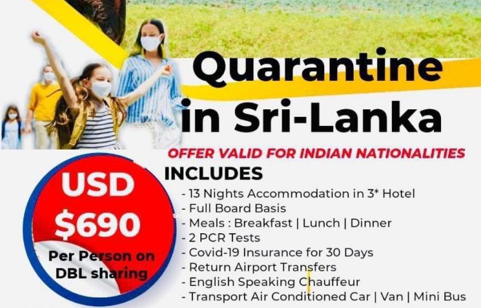 ඉන්දියාවේ පුරවැසියන්ට මෙරට දී ඇමෙරිකානු ඩොලර් 690ක් වැනි මුදලකට සුව පහසු හෝටල්වල රාත්රී 13ක නිරෝධායන කාලයක් ගත කළ හැකි බවට එක්තරා පුද්ගලික ආයතනයක් විසින් අන්තර්ජලායේ පළකර තිබූ දැන්වීමකට අනුව rata.lk අපි ඔවුන්ට කතා කළෙමු.