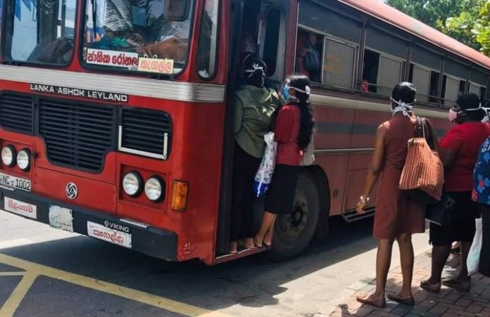 සෞඛ්ය සේවක සේවිකාවන් ප්රවාහනය කරන බස් රථයක තත්ත්වයයි මේ.