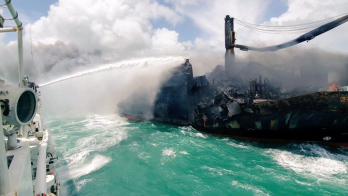 ගින්න නිවා දැමීමට ශ්රී ලංකා නාවික හමුදාවට හා ගුවන් හමුදාවට සහාය දක්වමින් ඉන්දීය යාත්රා ද තිබිණි. ගින්න පාලනය කර ඇතත් නැව ගිලා බැසීමේ දැඩි අවදානමක් පවතී. එය ගිලීගියහොත් සිදුවිය හැකි හානිය අවම කරගැනීමටත් ඉන් සිදුවිය හැකි කෙටි කාලීන සහ දිගු කාලීන පරිසර විනාශය අවම කරගැනීමටත් කටයුතු කරමින් පවතින සමුද්රීය පරිසර දූෂණ අධිකාරියේ සභාපති නීතිඥ දර්ශනී ලහඳපුර පවසයි.