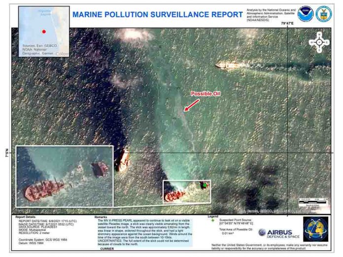 ආචාර්ය ගොඩහේවා එසේ කීව ද විනාශ වී ගිය X-Press Pearl නෞකාවෙන් තෙල් කාන්දුවන බව චන්ද්රිකා ඡායාරූප උපුටා දක්වමින් news.sky.com වාර්තා කර තිබේ. planet.com නමැති වෙබ් අඩවියේ පෘථිවියේ සිදුවන වෙනස්කම් පිළිබඳ චන්ද්රික ඡායාරූප දෛනිකව පළකරනු ලබයි. එම වෙබ් අඩවියේ පළකර ඇති චන්ද්රිකා ඡායාරූපවල නැවෙන් පිටවන තෙල් පැල්ලම දක්නට ලැබෙයි.