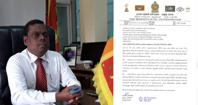 දකුණු පළාත් සභාවේ සියලුම තනතුරුවල සේවය කරන නිලධාරීන්ගේ මූලික මිනිස් අයිතිවාසිකම් උල්ලංඝනය කරමින් දකුණු පළාත් ප්රධාන ලේකම් ආර්.සී. ද සොයිසා විසින් ඊයේ (28) සියලු ආයතන ප්රධානීන්ට උපදෙස් සහිත ලිපියක් නිකුත් කර තිබේ.