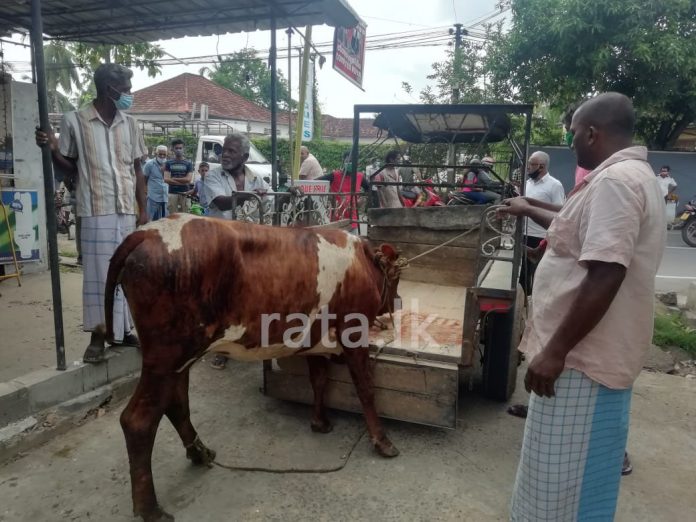 ත්රීරෝද රථයකින් රැගෙන යමින් සිටි ගවයෙකු අද (19) ගාල්ල තනිපොල්ගහ හන්දියේදී බේරා ගැනීමට ප්රදේශවාසීන් පිරිසක් සමත් වූහ.