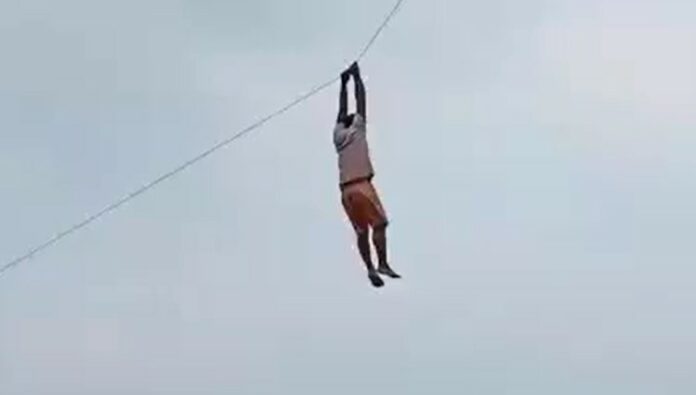 ඔහු දිගටම ලනුව අල්ලාගෙන එහි එල්ලී සිට ඇති බවත් පහළ සිටි තරුණයන් මහත් ආයාසයක් යොදා ඔහු පහතට ගන්නා විට අඩි 10ක් පමණ ඉහළ සිට පොළොවට පැන ඇති බවත් පවසා ඇත.