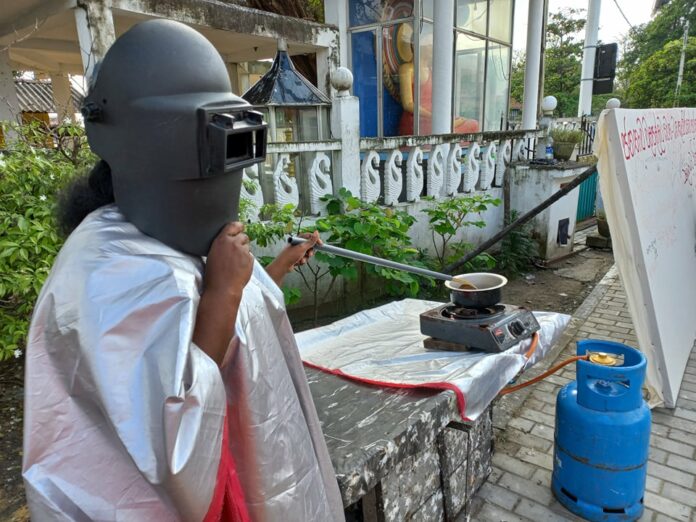 මෙම උද්ඝෝෂණය පැවැති අවස්ථාවේ දී ආරක්ෂිත ඇඳුම් කට්ටලයකින් සැරසුණු ගෘහණයක් ගෑස් සිලින්ඩරයක් භාවිතයෙන් ආහාර පිසින ආකාරයක් ද නිරූපණය කර තිබිණි.