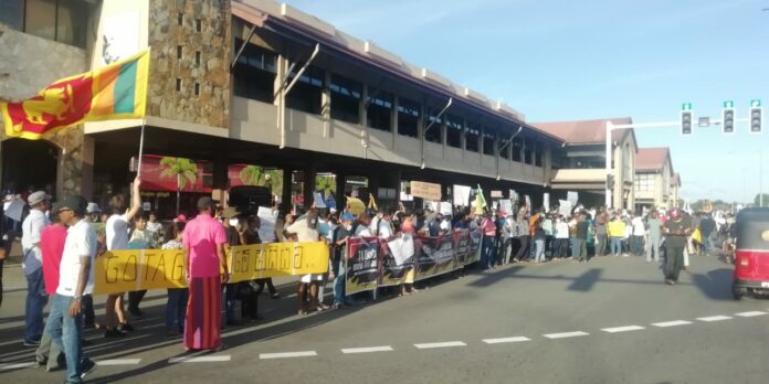 “ගෝඨාගෝ ගම හයියට” තමන් ද උද්ඝෝෂණය කරන බව පවසමින් ගාල්ල නගරයේ අද (14) සවස උද්ඝෝෂණයක් පැවැත්විණි. ගෝඨාගෝ ගමට නෑ ගමන් යාමට ඉන්ධන නොමැතිවීම හේතුවෙන් මෙලෙස ගාල්ල නගරයේ උද්ඝෝෂණය පවත්වන බවත් ඔවුහු කීහ.
