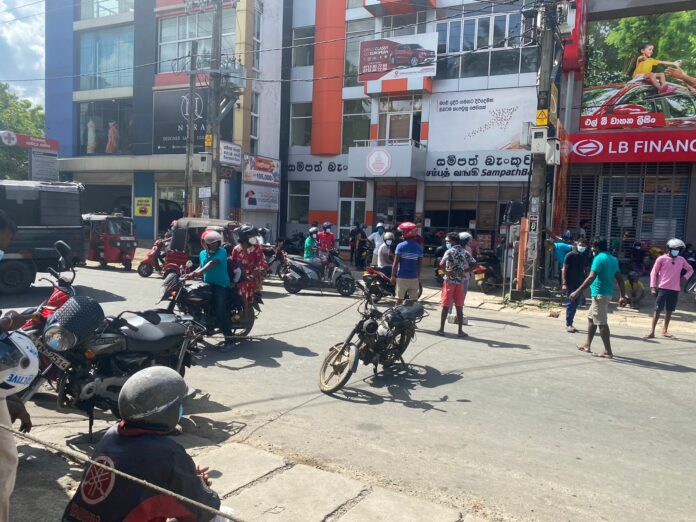 ගාල්ලේ කරාපිටිය ඉන්ධන පිරිවුම් හළේ ඉන්ධන නොමැතිවීම හේතුවෙන් අද (17) උදෑසන එහි ඉන්ධන බලාපොරොත්තුවෙන් සිටි ජනතාව මාර්ගය හරස්කර මේ මොහොතෙ විරෝධතාවක් ආරම්භ කර තිබේ.