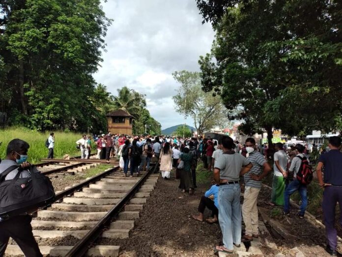 මෙම විරෝධතා හේතුවෙන් දුම්රිය ධාවනයට ද බාධා සිදුව තිබේ.