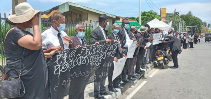 “ජනතාවගේ ඉල්ලීමට උණ්ඩයෙන් පිළිතුරු දෙන්න එපා” යැයි කියමින් නීතිඥයෝ අද (20) දහවල් ගාල්ල නගරයේ උද්ඝෝෂණයක නිරතවූහ.
