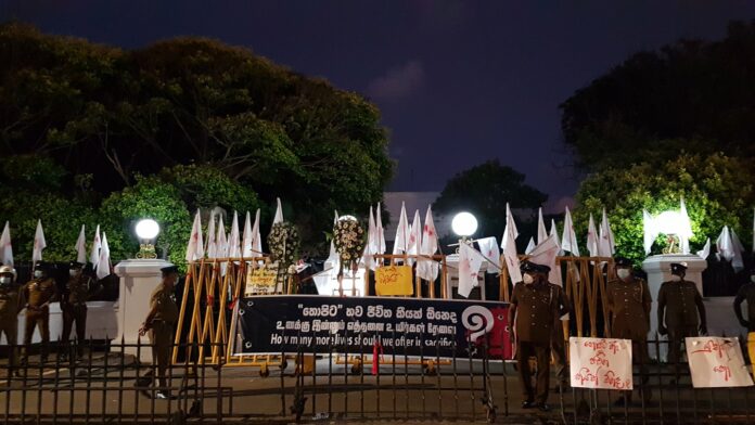 අරලියගහ මන්දිරය ඉදිරිපිට මහින්දගෝ ගම නමින් උද්ඝෝෂණ ස්ථානයක් නිර්මාණය කරගෙන විරෝධතාවයේ නිරත පිරිස් පවසන්නේ තමන්ගේ ශබ්දය පරයා නැගෙන ආකාරයෙන් එවැනි පිරිත් දේශනයක් විකාශය කිරීම ආරම්භ කර ඇති බවයි.