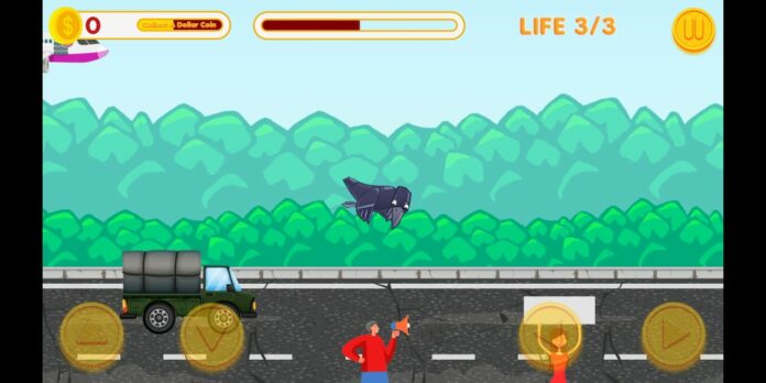 ගුවනේ පියඹායන මේ කපුටා අහසේ පාවෙන ඩොලර් කන අතර ගුවන්යානාවල වැදුණු විට මැරී වැටෙයි. ජීවිත අවස්ථා තුනක් කපුටාට හිමිව ඇත. එම ගුවනේ නිල් සහ කහ පැහැති ගෑස් සිලින්ඩර ද පාවෙන ආකාරයක් දක්නට ලැබෙයි.