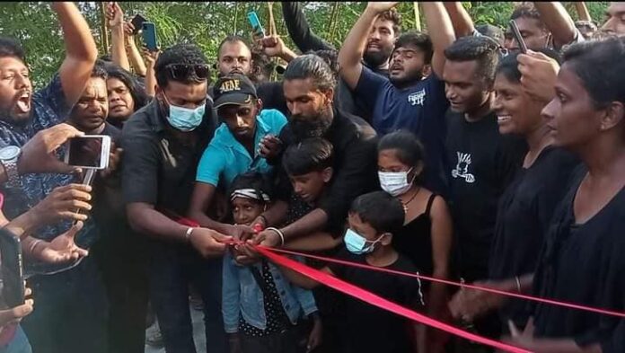 අද එම ස්ථානයට පැමිණි ප්රදේශවාසීන් පිරිසක් එහි ඇතුළුවන ස්ථානයේ පීත්ත පටි ඇද ප්රදේශයේ කුඩා දරුවන් එය විවෘත කරන ලදී.
