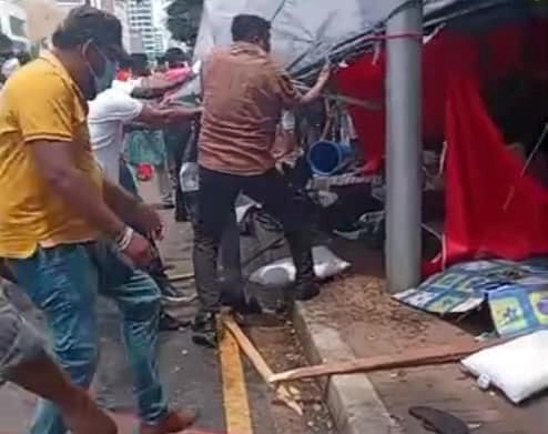 ආණ්ඩුවේ මැරයෝ “මයිනාගෝ ගම”ට පහර දෙති. මාධ්යවේදීන්ටත් ගහයි පුවත් Published: May 9, 2022 Reading time: Less than 1 min. FacebookTwitterPinterestWhatsAppLinkedinEmailPrintTelegramViber කොළඹ අරලියගහ මන්දිරය ඉදිරිපට සාමකාමී උද්ඝෝෂකයන් විසින් ගොඩනගා තිබූ මයිනාගෝ ගමට මීට සුළු වේලාවකට පෙර කඩා වැදුණු මැර පිරිසක් එහි සිටි උද්ඝෝෂකයන්ට පහර දෙමින් ගොඩනගා තිබූ කූඩාරම් කුඩු පට්ටම් කළහ. මෙම සිද්ධිය වාර්තා කළ මාධ්යවේදීන්ට ද ඔවුහු පහර දුන්හ. Tense situation near Temple Trees, Journalist assualted pic.twitter.com/k37j97RsuN— NewsWire 🇱🇰 (@NewsWireLK) May 9, 2022 Tags:araliya gaha mandirayacolombolankamahindarajapaksharatarata.lksri lankatempletres FacebookTwitterPinterestWhatsAppLinkedinEmailPrintTelegramViber Editor Rata Related articles කොළඹ නගර සභාවට බිලියන 04ක වරිපනම් පොල්ලක් පුවත් October 12, 2025 ට්රම්ප්ට නොලැබුණු මචාඩෝට ලැබුණු නොබෙල් ත්යාගය පුවත් October 11, 2025 ඇමෙරිකාවේ යුධෝපකරණ කම්හලක පිපිරීමක් පුවත් October 11, 2025 මහින්ද සහ මෛත්රී, වෙඩි නොවදින රථ ඉල්ලති පුවත් October 11, 2025 Recent articles කොළඹ නගර සභාවට බිලියන 04ක වරිපනම් පොල්ලක් පුවත් October 12, 2025 ට්රම්ප්ට නොලැබුණු මචාඩෝට ලැබුණු නොබෙල් ත්යාගය පුවත් October 11, 2025 ඇමෙරිකාවේ යුධෝපකරණ කම්හලක පිපිරීමක් පුවත් October 11, 2025 මහින්ද සහ මෛත්රී, වෙඩි නොවදින රථ ඉල්ලති පුවත් October 11, 2025