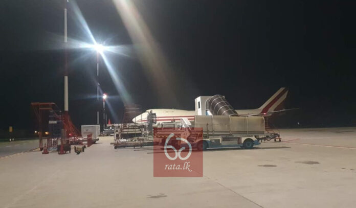 නයිජීරියාවේ සිට ශ්රී ලංකාවට අද (10) අලුයම 3.40ට පැමිණි ගුවන් යානය කටුනායක ගුවන් තොටුපොලේ නවතා තිබෙන අයුරු මෙම ඡායාරූපයේ දැක්වේ.
