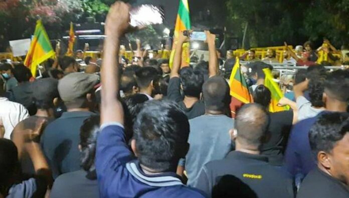 මයිනාගෝ ගම වෙනුවට අරලියගහ මන්දිරය ඉදිරිපිට “No Deal ගම” ආරම්භ කිරීමට විරෝධතා කරුවන් කටයුතු කරමින් සිටියි.
