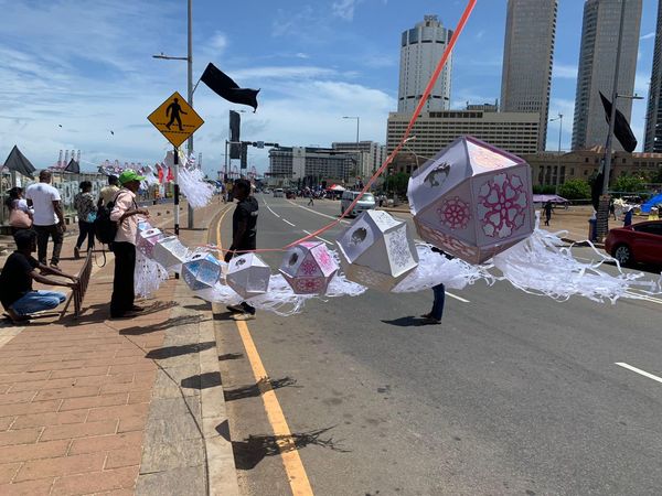 කොළඹ ගාලුමුවදොර පිටියේ ගෝඨාගෝ ගම අරගල භූමිය වෙසක් සැරසිළිවලින් අලංකාර වෙමින් පවති.