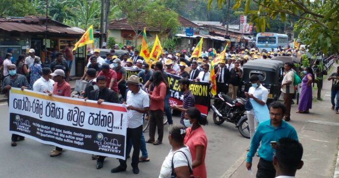 ගෝඨා – රනිල් ඊනියා හවුල පන්නමු” යන්න තේමා කරගනමින් ගාලු විරෝධතාව අද (07) මීට සුළු වේලාවක පෙර කරාපිටිය ශික්ෂණ රෝහල ඉදිරිපිටින් ආරම්භවිය.
