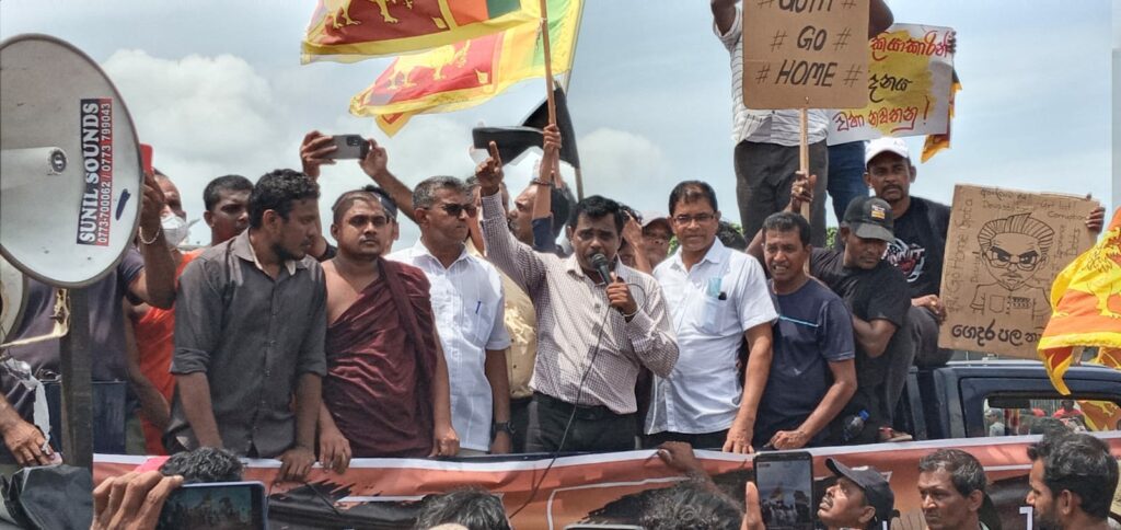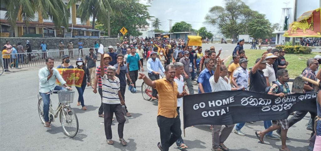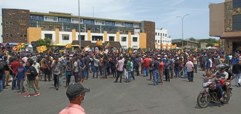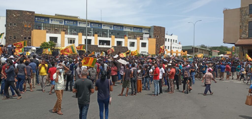 පොලිස් බාධක පෙරළා දමමින් ගාලු කොටු පවුර මතට නැගී විරෝධතාවක නිරත වූ සිය ගණනක අරගලකරුවෝ මද වේලාවක් එහි රැඳී සිට යළි ගාලු නගරයට පිවිස ගාල්ල මහජන ක්රීඩාංගණය සහ බස් නවැතුම්පොළ අතර විරෝධතාවයක නිරතව සිටිති.