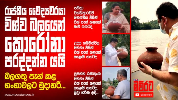 සමස්ථ ලෝකයම විද්යාත්මක සංසිද්ධීන් පීළිබඳ විශ්වාසය තබා කොරෝනා මර්ධනය කිරීමේ සටනට අවතීර්ණ වී සිටිය දී ශ්රී ලංකාවේ සෞඛ්ය ඇමතිනිය ඇතුළු රජයේ ප්රධාන අමාත්යවරු ගඟට මුට්ටි දමා කොරෝනා මර්ධනය කරන්නට කටයුතු කරති.