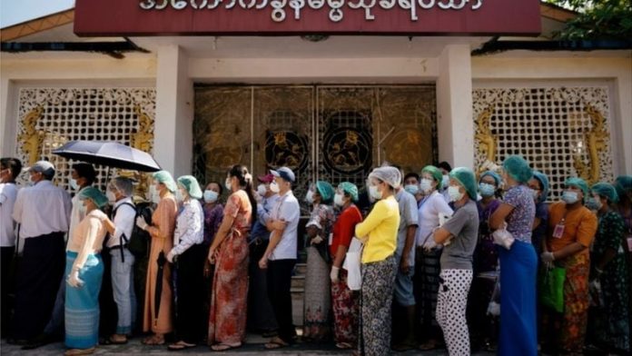 මියන්මාරයේ මහ මැතිවරණය ඊයේ (08) පැවැත්වුණු අතර කොවිඩි අවදානම ද නොතකා මිලියන ගනනක් ජනතාව ඡන්දය ප්රකාශ කළ බව වාර්තා වේ.