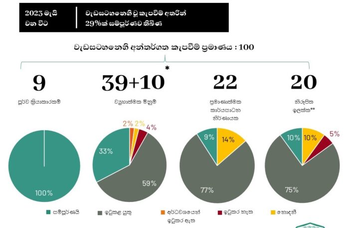 ජාත්යන්තර මූල්ය අරමුදල සමඟ එකඟ වී ඇති කැපවීම් 100ක් අතරින් ශ්රී ලංකාව මැයි මාසය අවසානය වනවිට ඉටුකර ඇත්තේ 29ක් පමණි. කැපවීම් 03ක් ඉටුකිරිමට ශ්රී ලංකාව මේ වනතුරු අපොහොසත්ව ඇති බව වෙරිටේ රිසර්ච් ආයතනය පෙන්වා දෙයි.