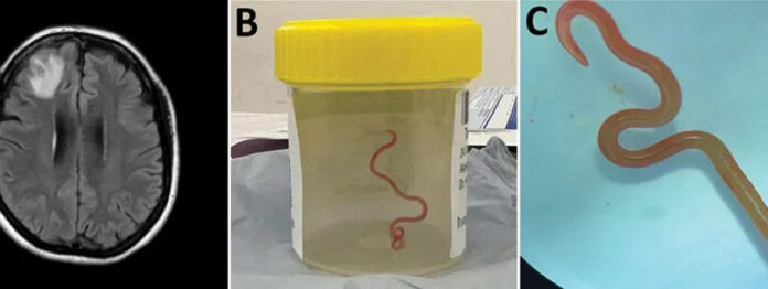 කාන්තාවකගේ මොළය තුළ ජීවත් වූ පරපෝෂිත පණුවෙක් සොයාගත් බව වෛද්යවරු කණ්ඩායමක් පවසති.