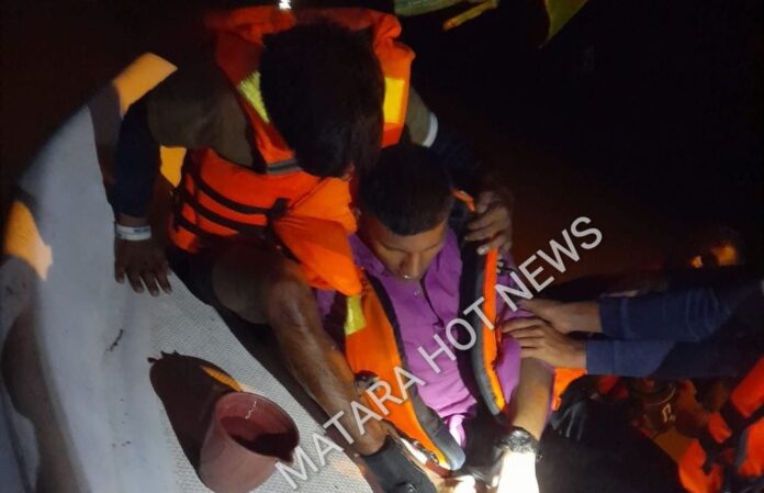 එම ස්ථානයේ පුද්ගලයකු ගසක අත්තක එල්ලී උදව් ඉල්ලා කෑ ගසමින් සිටින බව ඊයේ (07) රාත්රී සමාජ මාධ්ය ඔස්සේ දැනුම්වත් කිරීමත් සමඟ ප්රදේශවාසීන් නාවික හමුදා නිලධාරීන්ට දැනුම් දී බෝට්ටුවක්ද සොයාගෙන පැයක පමණ වෙහෙසකර මෙහෙයුමකින් පසු එම තරුණයා බේරාගෙන තිබිණි.