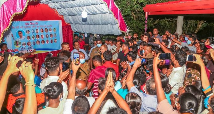 ”අපි හැම රැස්වීමක් පිළිබඳවම සෞඛ්ය වෛද්ය නිලධාරී කාර්යාල ලිඛිතව දැනුවත් කිරීම් කරලා නැති වුවත් පුළුවන් උපරිමයෙන් සෞඛ්ය මාර්ගෝපදේශ අනුව රැස්වීම තියන්න කටයුතු කළා. ආණ්ඩු පක්ෂය සියලු නීති කඩ කරමින් සෙනග රැස්කරමින් තමයි රැස්වීම කළේ. ඒත් කිසිම නිලධාරියෙක් ඒ ගැන සොයා බැලුවෙත් නෑ. මම කීප වතාවක්ම නිලධාරීන්ට පැමිණිලි කළත් නිතිය ක්රියාත්මක කළේ නෑ”