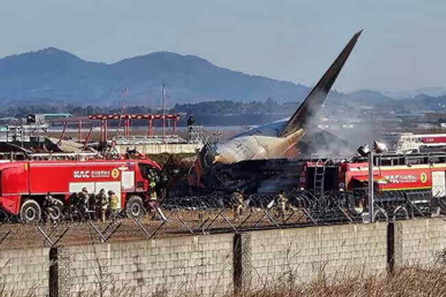 පුද්ගලයන් 181 දෙනකු සහිතව දකුණු කොරියාවේ මුආන් ගුවන්තොටුපොළට ගොඩබැස්සවීමට පැමිණි මගී යානයක් එම ගුවන්තොටුපොළේ තාප්පයක වැදීමෙන් මෙම අනතුර සිදුව ඇත.
