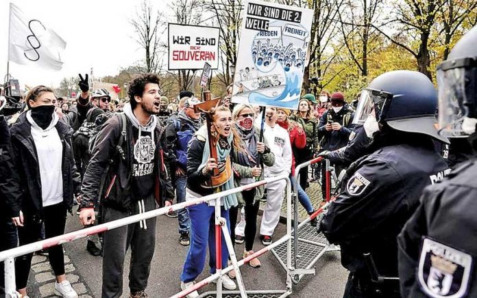 However, several hundred demonstrators had already gathered on the edges of the cordoned-off grounds of the Reichstag parliament building by early Tuesday.