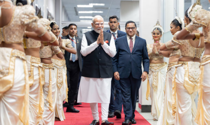 ඉන්දීය අගමැති නරේනද්ර මෝදි තෙදින නිල සංචාරයක් සඳහා ඊයේ (04) රාත්රී ශ්රී ලංකාවට පැමිණියේ ය. කටුනායක ගුවන් තොටුපොළේ දී විදේශ කටයුතු අමාත්ය විජිත හේරත් විසින් ඉන්දීය අගමැතිවරයා පිළිගන්නා ලදී. එම අවස්ථාවට සෞඛ්ය සහ ජනමාධ්ය අමාත්ය නලින්ද ජයතිස්ස ඇතුළු මැති ඇමතිවරු කිහිප දෙනකු ද එක්ව සිටියහ.