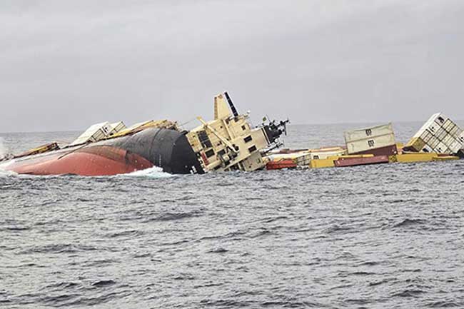 ලයිබිරියාවේ ධජය සහිත භාණ්ඩ ප්රවාහන නෞකාවක් ඉන්දියාවේ විජින්ජාම් වරායෙන් පිටත්වීමෙන් පසු පෙරළී ගොස් ඊයේ අනතුරකට ලක්ව තිබුණි.