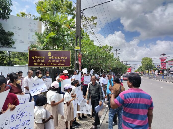 ගාල්ල ටෙල්ෆර්ඩ් ජාත්යන්තර පාසලේ සිසුන්ගේ දෙමාපියෝ පිරිසක් කොළඹ අධ්යාපන අමාත්යංශය ඉදිරිපිට ඊයේ (04) උද්ඝෝෂණයක නිරත වූහ.