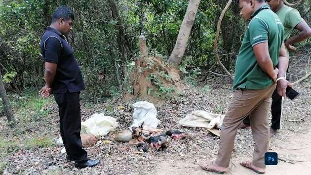 රිටිගල දැඩි ස්වභාව රක්ෂිතයට, ඝාතනය කරන ලද ගවයින්ගේ ශරීර කොටස් ගෙනවිත් දැමූ පුද්ගලයින් දෙදෙනෙකු අත්අඩංගුවට ගත් බව රිටිගල වනජීවී අභයභූමියේ නිලධාරීන් පවසයි.