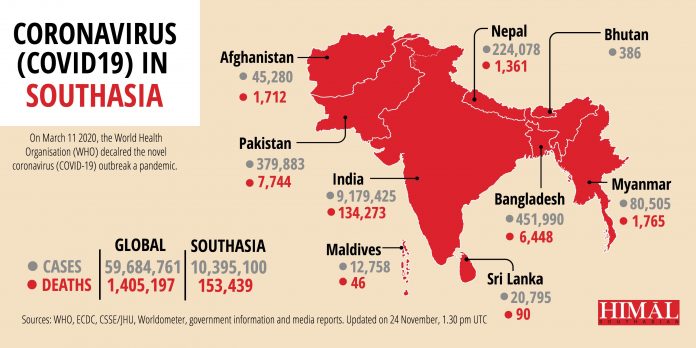 දකුණු ආසියාවේ රටවල කොරෝනා ආසාදිතයන් 10,395,100ක් අද (24) වනවිට වාර්තාවන අතර සිදුව ඇති මරණ සංඛ්යාව 153,434කි.