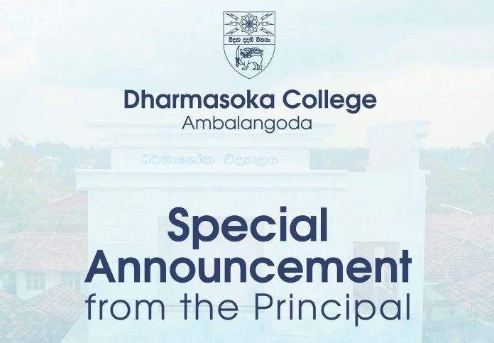 මේ සම්බන්ධයෙන් නිවේදනයක් නිකුත් කරන අම්බලන්ගොඩ ධර්මාශෝක විද්යාලයේ විදුහල්පතිවරයා මෙසේ පවසයි.