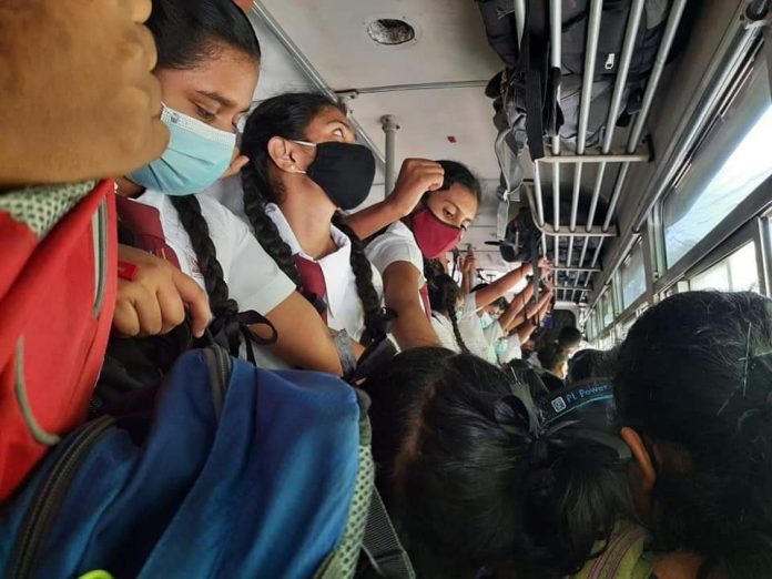 මේ බස් රථයේ පාසල් දරුවන් ප්රවාහනය කරද්දී රජයෙන් නිරෝධායන නීති කිසිවක් අනුගමනය කරන බවක් පෙනෙන්නට නැත. මෙය දරුවන් සියලු දෙනා අනතුරේ හෙළීමක් බව වගකිව යුත්තන්ට අපි අවධාරණය කරන්නෙමු.