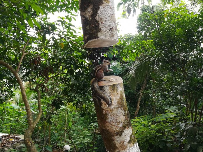ඒ කාගේත් ආදරයට පාත්රවන ලේනකු ගසක සිටින ආකාරයයි.